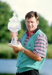 Nick Faldo of England with the trophy after his win in the 1993 Carrols Irish Open at Mount Juliet on July 4, 1993 in Kilkenny.(Photo by Stephen Munday/Getty Images)