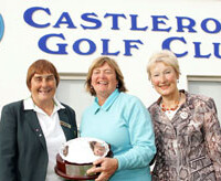 Ireland’s Gertie McMullen (The Island) pictured with ILGU Board member Dympna Conlon and Castlerock Lady Captain Diane Stuart fired a final round 79 to defeat Canada’s Diane Williams by four strokes to win the Irish Senior Women’s Open Strokeplay title at Castlerock Golf Club, Friday 13 September.