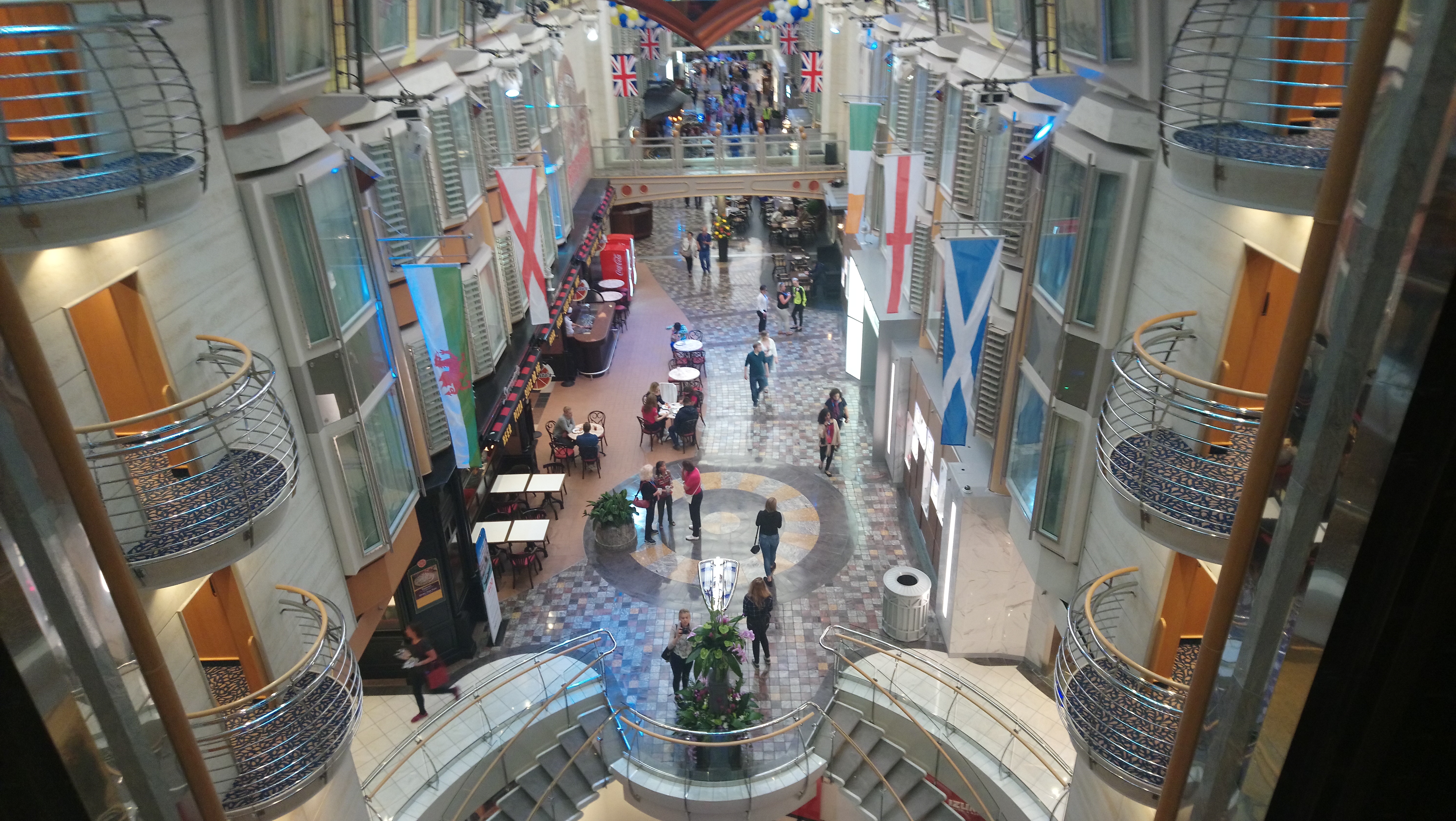 The view from the Eighth gallery, the ship’s Grafton Street, which features 5 shops, incl Michael Kors, 4 Restaurants/Bars.