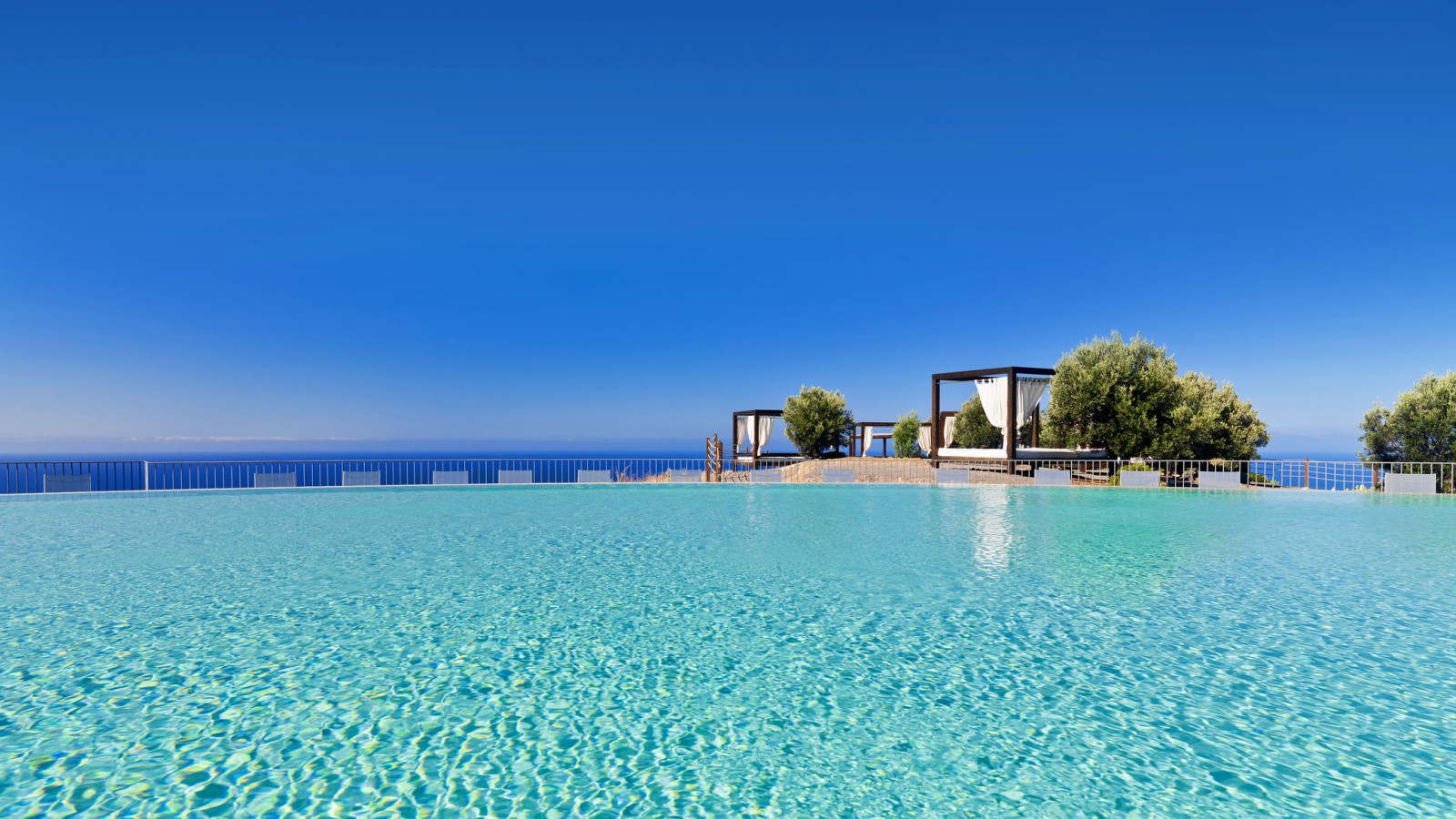 The hotel elegant rooms and suites are all decorated in contemporary style with modern comforts such as a large plasma TV, WiFi and a private terrace with views of the mountains and or golf course. There are seven outdoor pools, the Sunset Pool is located on the 11th floor, offering incredible panoramic views of the mountains and the sea.  It’s an amazing experience to watch the sun rise and set each day from this area.
