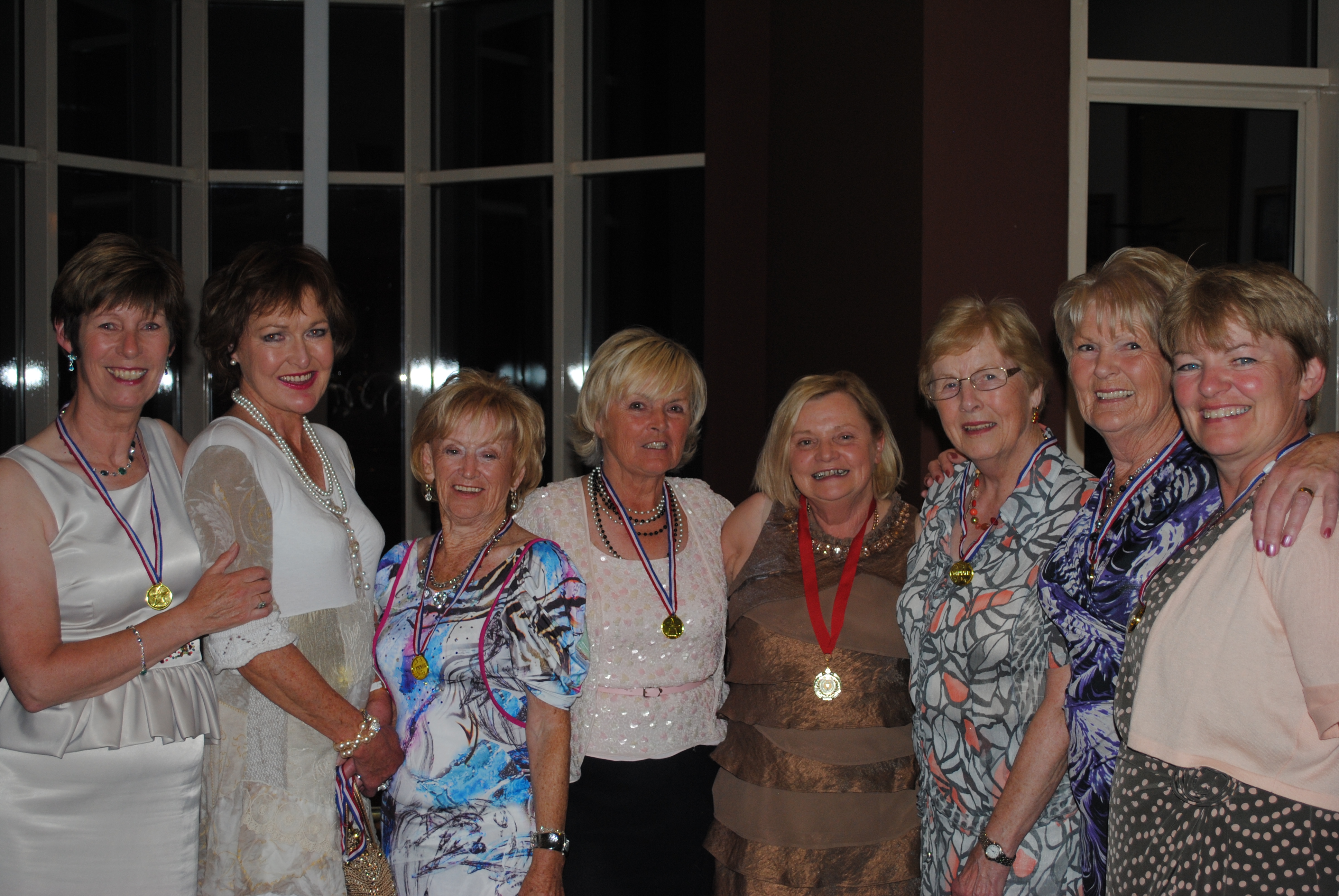 L/R Liz Cooley, Catherine Reid, Chris Grist, Mary Austin, Overall Winner Geraldine Bradley, Betty Fulton,Leontia Sheppard, Bernie Mc Nally.