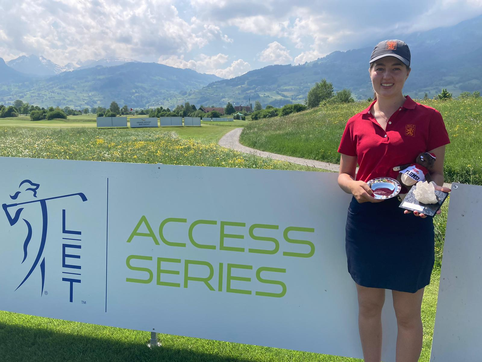 The 19-year-old, who was playing in just her third LETAS event, was one shot behind overnight leader Nikki Hofstede at the start of the day, but kept her cool as her compatriot faded away to seal the victory at GAMS-Werdenberg Golf Club.