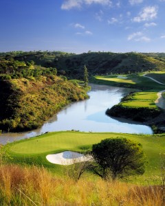 With theSerra do Caldeirão Mountains to the north and the Atlantic Ocean to the south the setting at this course is truly idyllic. Each hole is uniquely designed to blend into the landscape, making the most of the natural terrain, from its ingeniously shaped and sculptured bunkers, to the impressive presentation and attention to detail making every hole as remarkable as the next. The fairways and greens are bordered by several lakes and water comes into play on eleven of the holes. The course features a series of eight par 4s, five par 3s and five par 5s in a demanding layout.