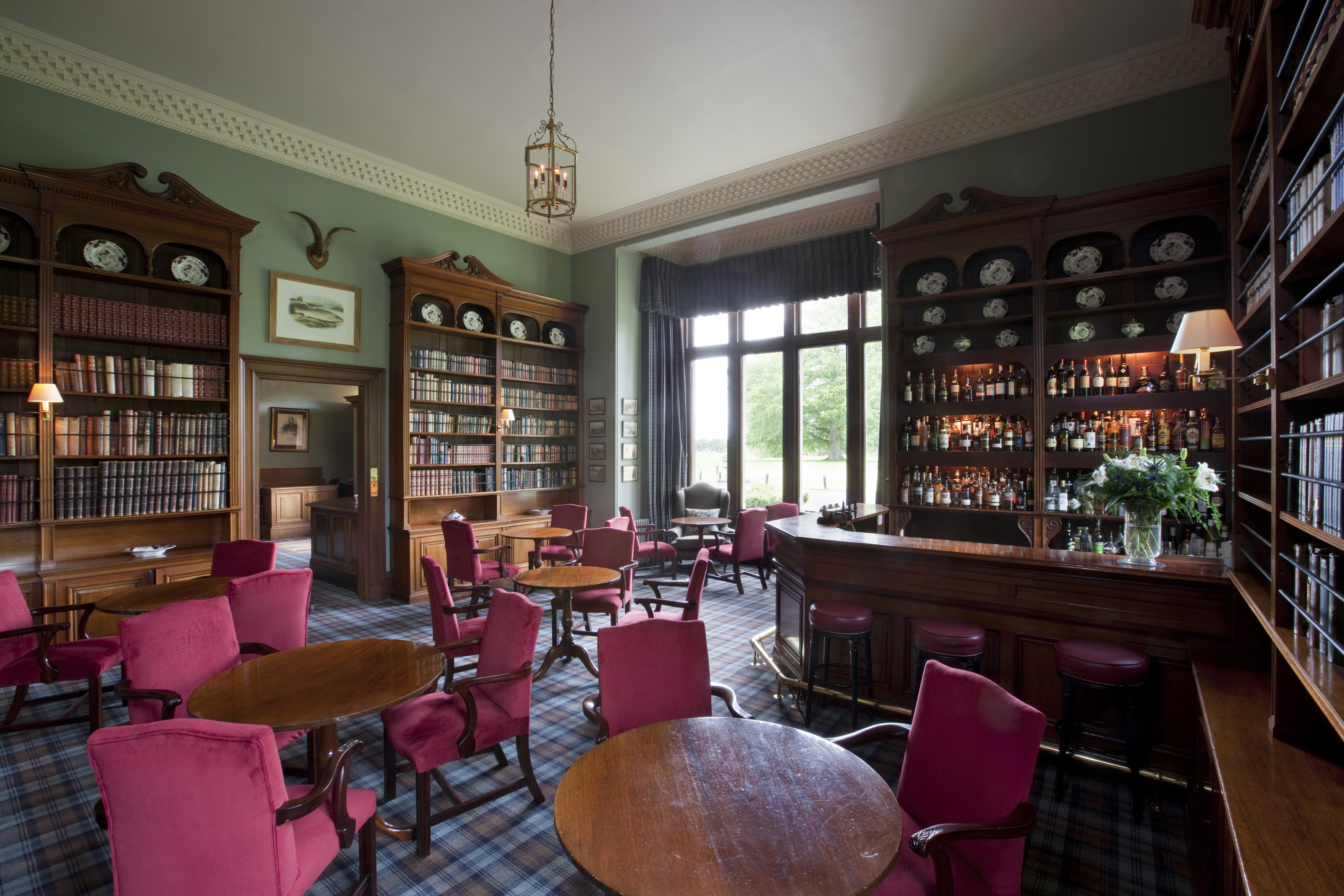 After dinner many diners choose to repair to the cosy ambiance of the library, where a log fire burns brightly allowing for chats over a wee dram or two from one of the best selections of Scottish malts.